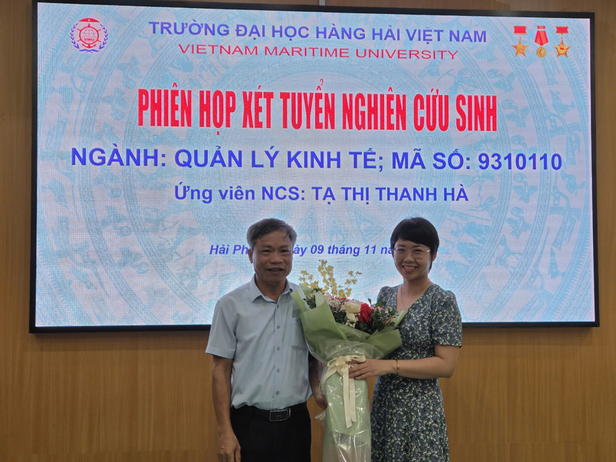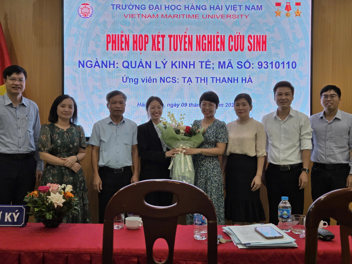 Sáng ngày 09/11/2025, tại Phòng 204 Nhà A6, Viện Đào tạo Sau Đại học, Trường Đại học Hàng hải Việt Nam đã tổ chức xét tuyển nghiên cứu sinh cho ứng viên Tạ Thị Thanh Hà. Ứng viên Hà tốt nghiệp đại học chuyên ngành Kinh tế ngoại thương, hoàn thành chương trình thạc sĩ chuyên ngành Tổ chức và quản lý vận tải tại Trường Đại học Hàng hải Việt Nam, và hiện đang công tác tại Trường Đại học Hải Phòng.