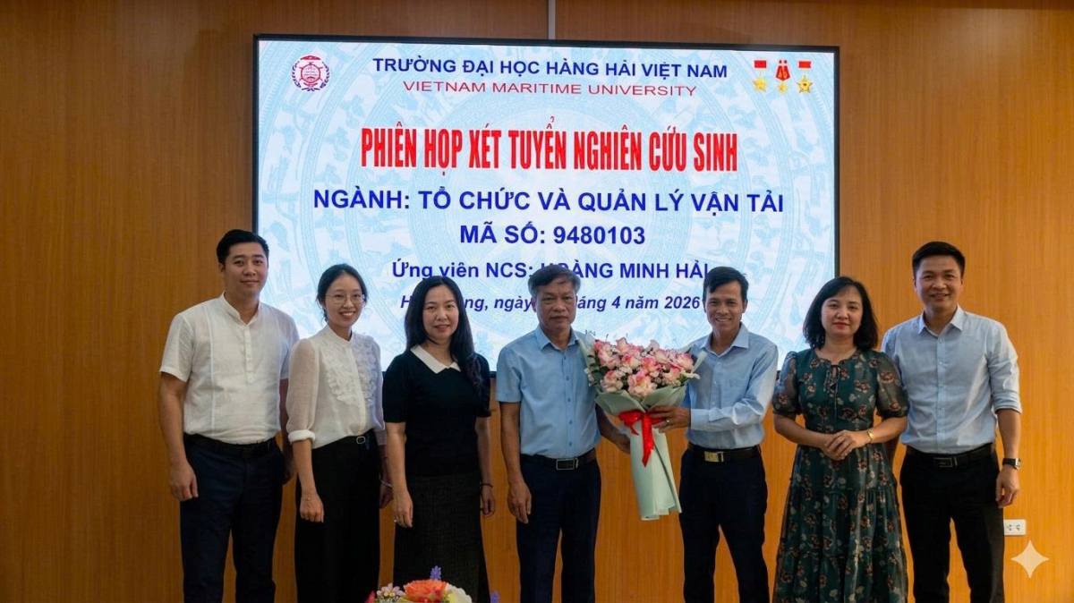 Sáng ngày 18/04/2026, tại Phòng 204, Nhà A6, Viện Đào tạo Sau đại học - Trường Đại học Hàng hải Việt Nam đã tổ chức phiên họp xét tuyển nghiên cứu sinh ngành Tổ chức và quản lý vận tải mã số 9840103 cho ứng viên Hoàng Minh Hải và ngành Quản lý kinh tế, mã số 9310110 cho ứng viên Nguyễn Lê Mạnh Cường.